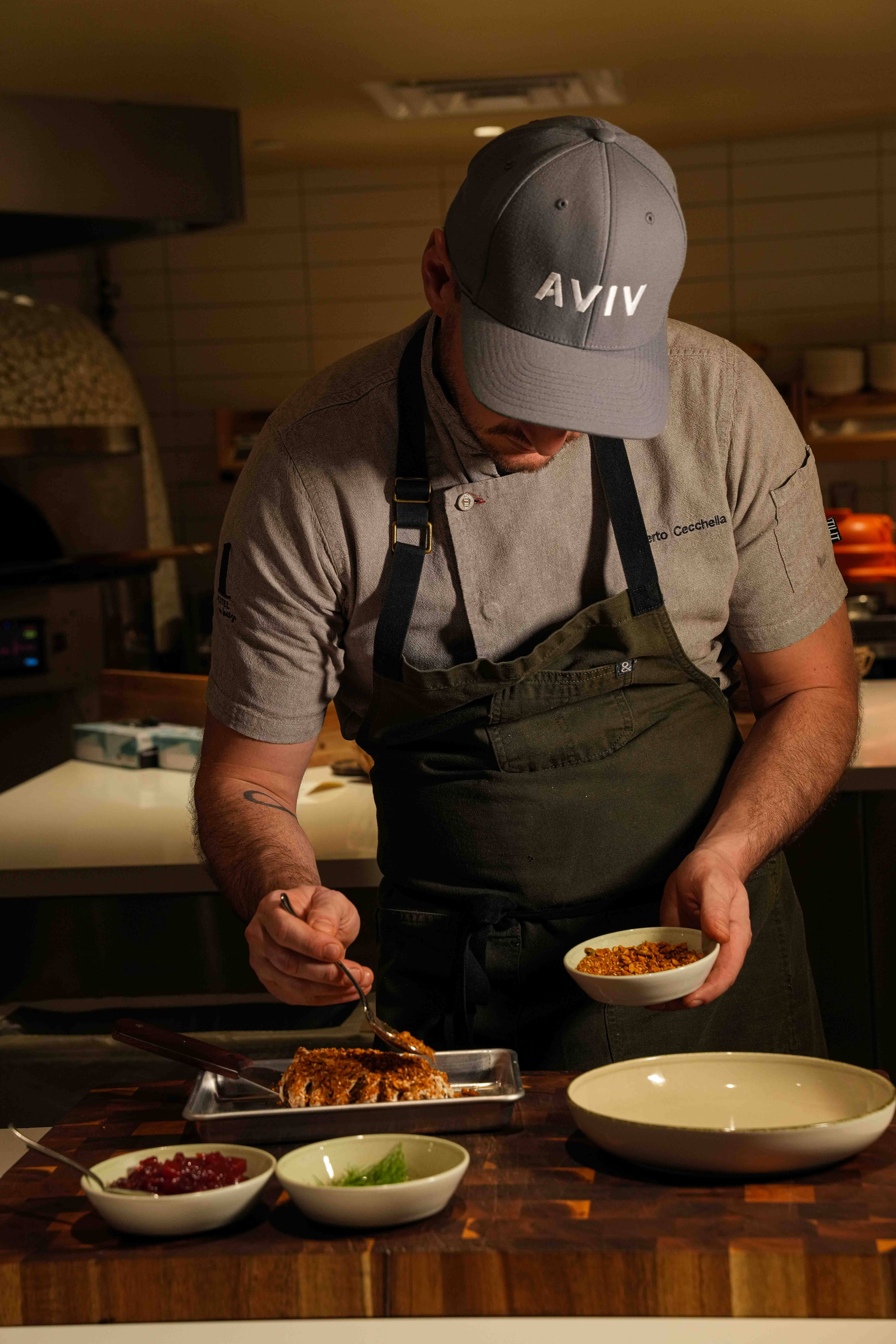 Join us at AVIV for Passover, featuring seasonal specials inspired by tradition. Complimentary Matzah for all guests to enjoy. Matzo Ball Soup Garden Vegetables, Schmaltz, Dill KS Slow Cooked Brisket Harissa, Tzimmes, Mixed Greens KS Everything Crusted Salmon Charoset, Potato Kugel, Horseradish KS Flourless Chocolate Cake Rose Whipped Cream, Poached Sour Cherries, Pistachio KS/Kosher Style